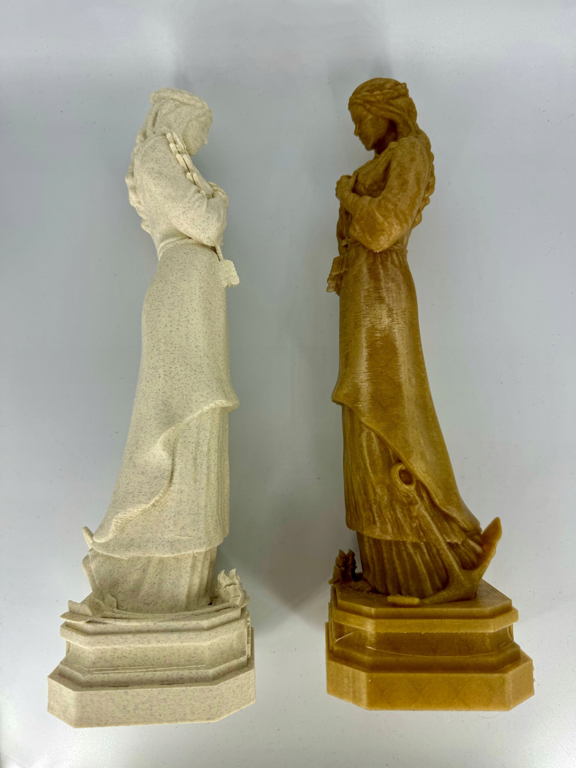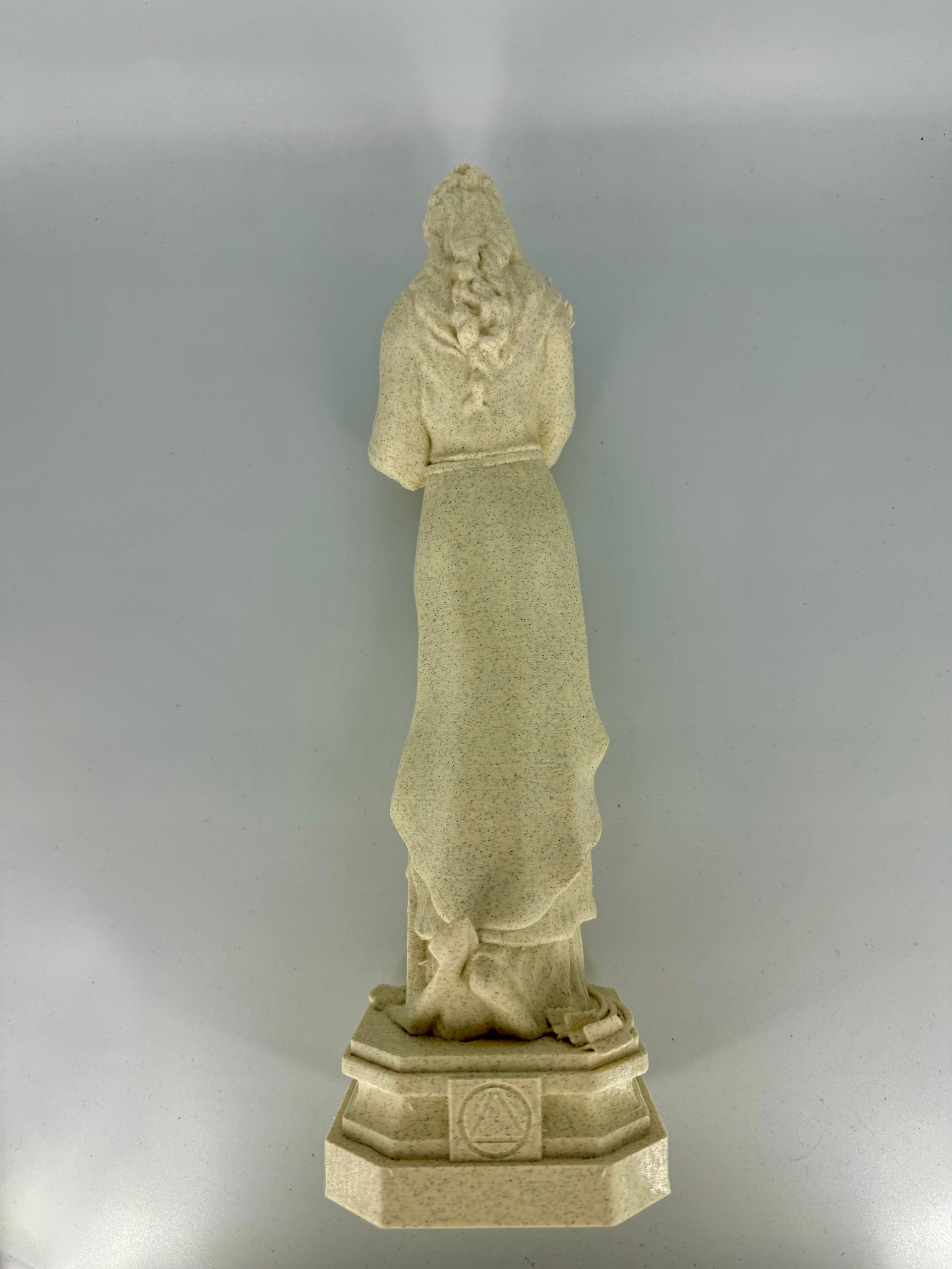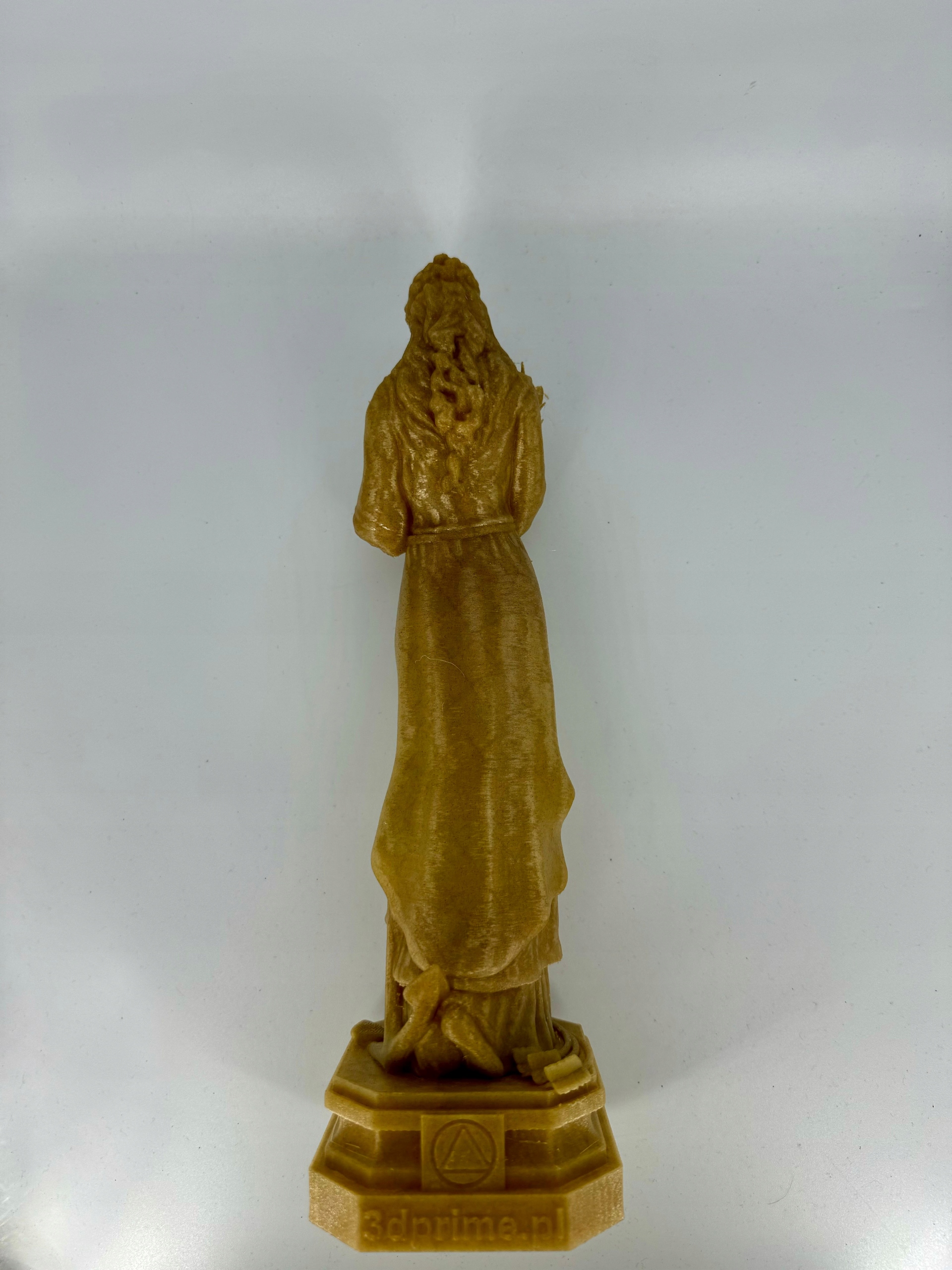 Pięknie wykonana figurka św. Filomeny, stworzona z wytrzymałego filamentu PLA przy użyciu najnowocześniejszej technologii druku 3D. Precyzyjne detale, takie jak wyrazista twarz i pofałdowania szat, są starannie odwzorowane, co czyni tę figurkę wyjątkowym elementem dekoracyjnym.