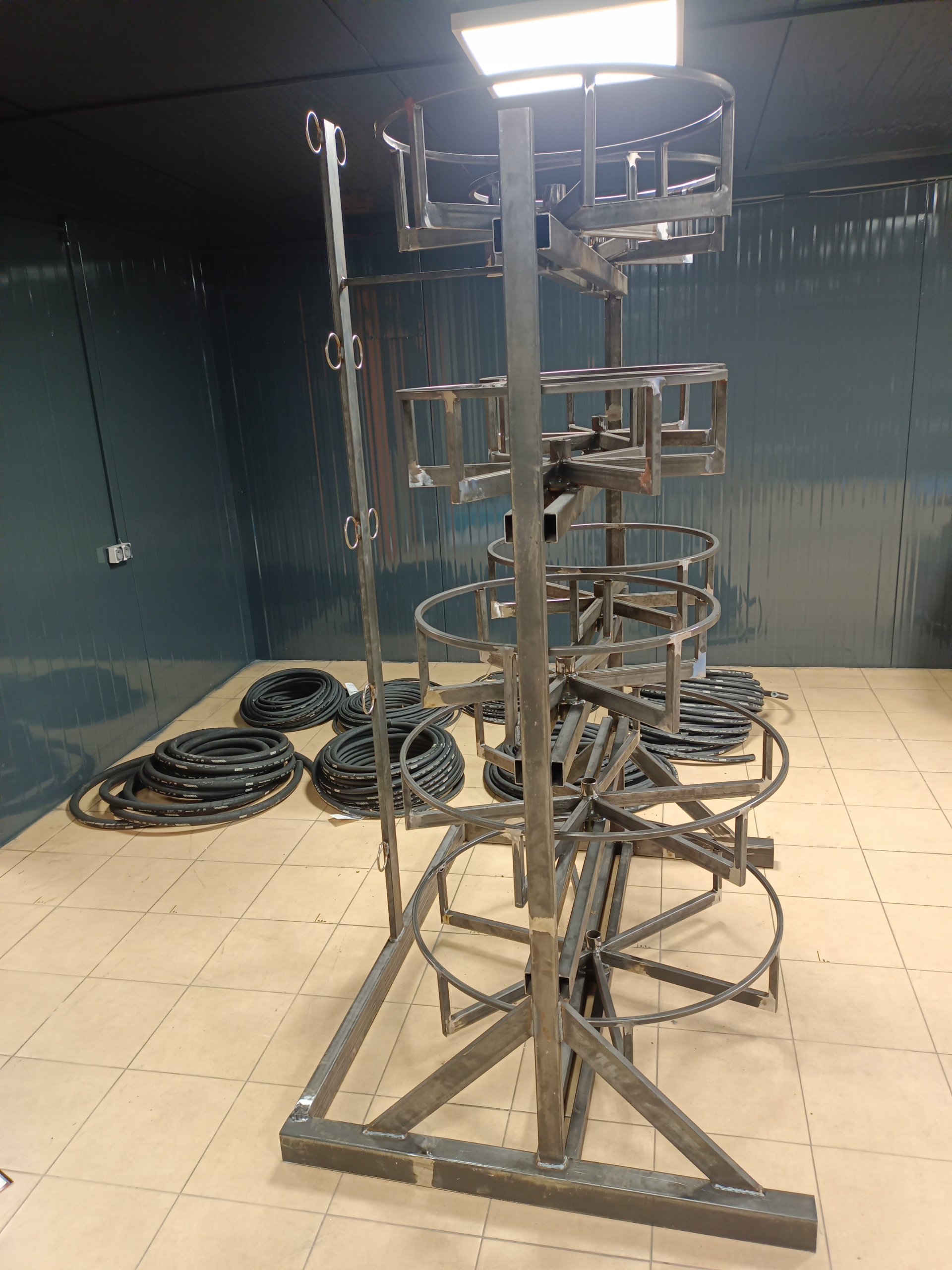 STOJAK REGAŁ NA WĘŻE HYDRAULICZNE OBROTOWE PÓŁKI STAL