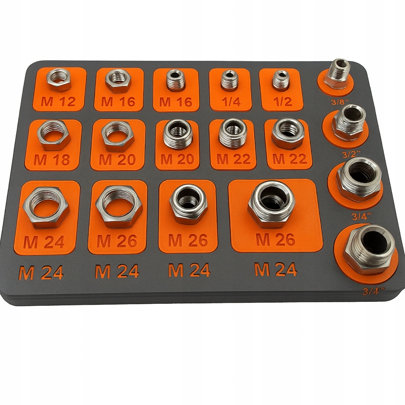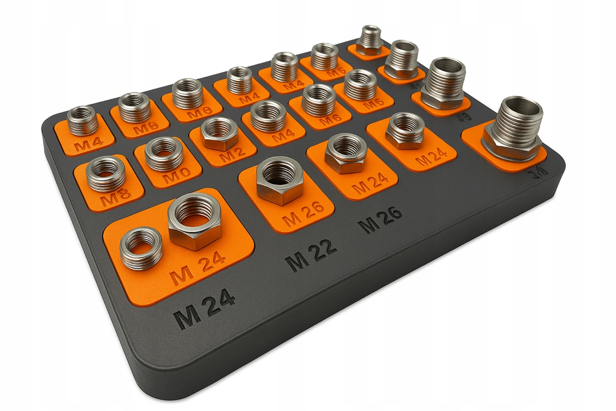 - Czytelne oznaczenia rozmiarów: M12, M14, M16, M18, M20, M22, M24, M26