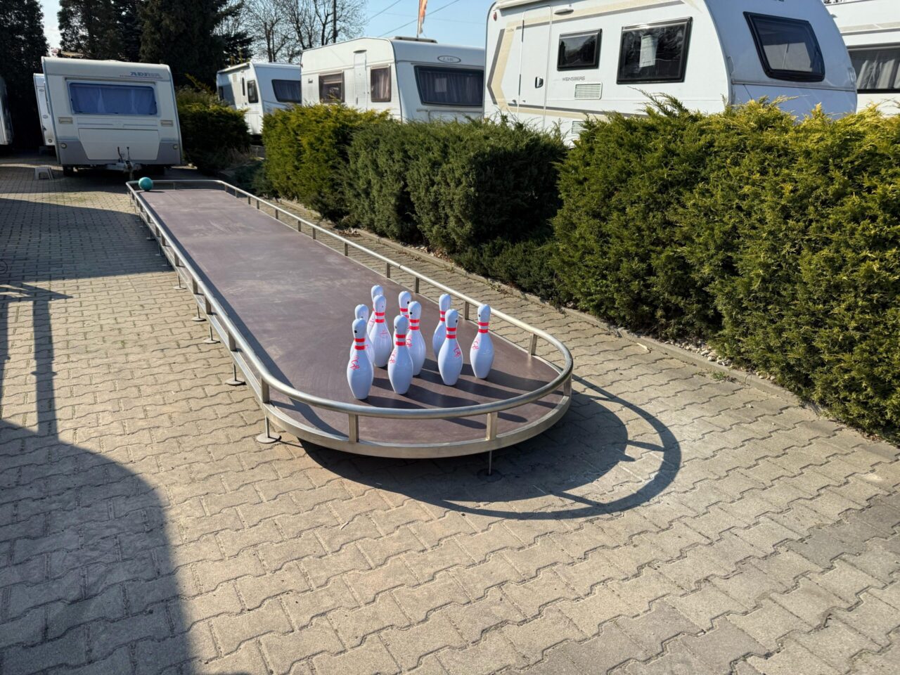 Z przyjemnością prezentujemy naszą najnowszą realizację – przenośny tor do kręgli o długości 10 metrów, wykonany na specjalne zamówienie klienta! Dzięki modułowej konstrukcji, tor składa się z czterech segmentów (2,5 m x 1,5) co czyni go bardzo łatwym w transporcie. Tor posiada nóżki, które są regulowane co daje łatwe dopasowanie do terenu. Dzięki solidnej konstrukcji i mobilności, tor świetnie sprawdzi się w plenerze, na imprezach firmowych, eventach czy w prywatnych ogrodach.